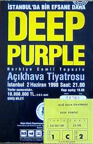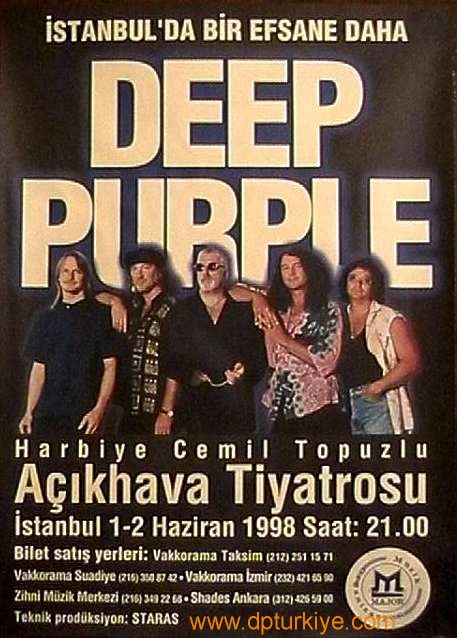 DEEP PURPLE, Ülkemize ilk kez ; 1 ve 2 Haziran 1998 Pazartesi ve Salı günleri iki konser vermek üzere geldi.